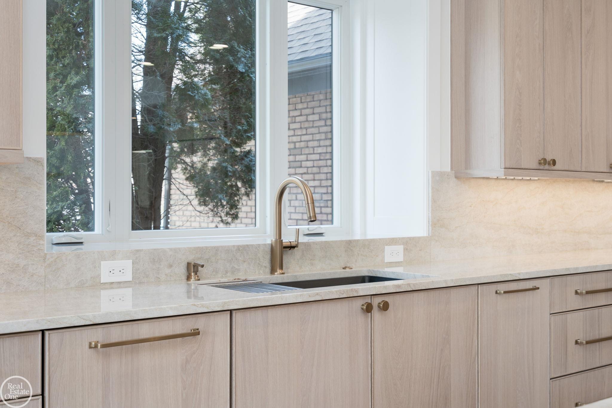An exceptional estate in the gated community of Hills of Lone Pine in Bloomfield Hills. Nearly 3/4 acre lot with elevated, unobstructed western exposure, this estate captures breathtaking sunset views overlooking a brand-new 2025 resort-style pool, a setting that simply cannot be replicated. The home has been completely transformed inside and out, combining classic architecture with ultra-high-end modern luxury. Exterior upgrades include a new exposed aggregate driveway, walkways, patios, hardscape, landscaping, new garage doors, and a fully finished garage with epoxy floors, drywall, and fresh paint. 18-foot soaring ceilings in the dramatic foyer and great room immediately command attention, creating a stunning sightline from the front entry straight through the home to the backyard and pool beyond. Show-stopping ultra-luxury kitchen with 9-foot ceilings, featuring Taj Mahal quartzite countertops and backsplash, Wolf and Sub-Zero appliances, and bespoke, high-end custom wood cabinetry, powder room features underlit cristallo quartzite. Custom 8-foot solid core wood doors throughout, a private office, a library, a fully customized pantry, and a beautifully designed mudroom. The first-floor primary suite is a true retreat, an expansive custom walk-in closet, and a spa-level primary bath finished to the highest standards. Step outside to a private Trex deck exclusive to the primary suite, perfect for quiet mornings or sunset evenings. Upstairs, two additional bedrooms are joined by a thoughtfully designed laundry room and a striking custom bridge that overlooks the great room and kitchen. The walkout lower level is nothing short of exceptional, offering 3,184 square feet of ultra-high-end living space designed to rival the finest luxury resorts. Four sliding glass doors open directly to the backyard, flooding the space with natural light. Highlights include a fully custom bar and secondary kitchen with premium wood cabinetry and Sub-Zero refrigeration, a dramati